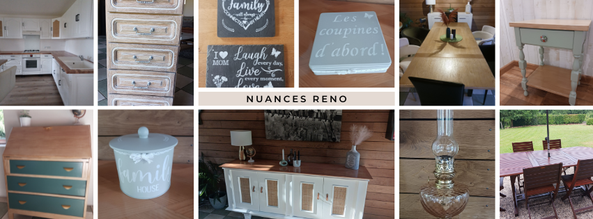Bienvenue chez Nuances Réno, votre partenaire dédié à la transformation et à l'embellissement. Spécialisé dans le relooking de meubles ainsi que la vente de peintures et produits pour le bois, je mets ma passion et mon savoir-faire au service de vos projets. Découvrez comment je peux redonner vie à vos intérieurs. Mes engagements : qualité, écoute et créativité. Je suis ravie de vous accompagner dans cette aventure.